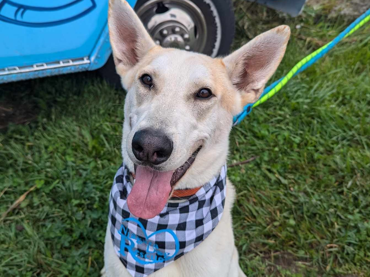 Cooper is a striking 4 year-old white Husky mix with a fun-loving spirit and a big heart. Weighing in at 85 lbs, he’s a city-ready explorer with a country dog soul—equally happy strolling city sidewalks or bounding through open spaces.
