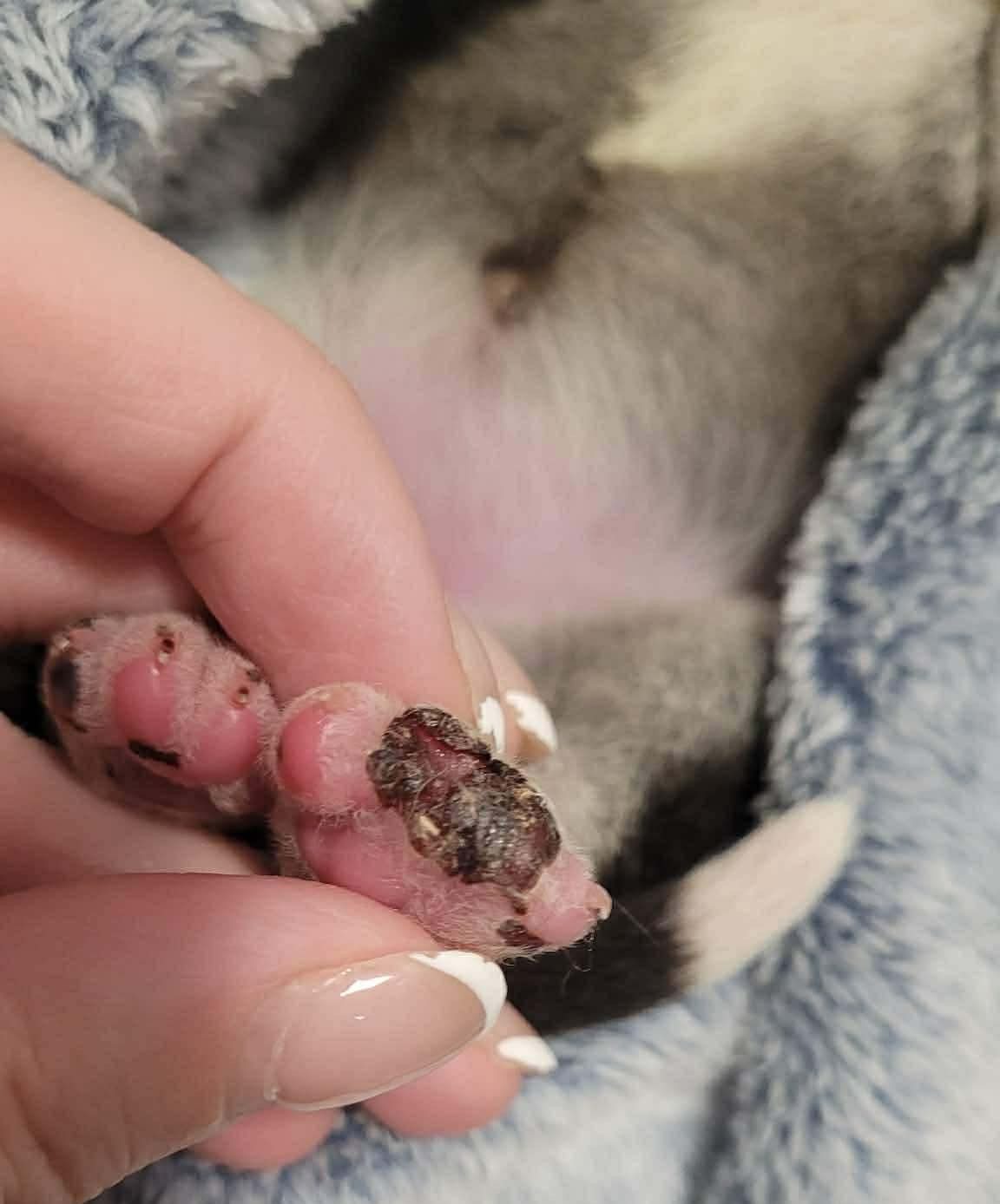 Among them was a tiny puppy born outside in the north, missing one eye and in need of medication. Her mother is named Angel, so she was given the name Solange — meaning “Earth Angel.” She and several others stole the hearts of everyone present. Some of the puppies were so young their eyes were not even open yet. One had already lost toes to frostbite - injuries that happen far too often to puppies born outdoors in winter.