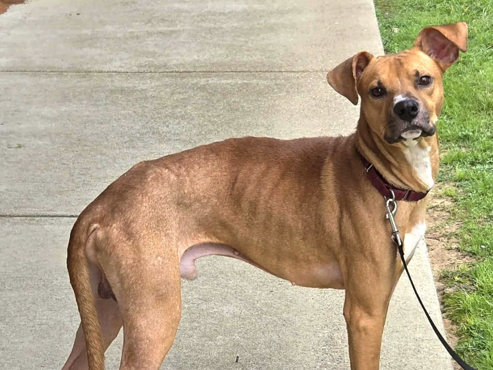 Foster insights/backstory: Elvis was very anxious when he first came to me and was also very malnourished. He isn't food aggressive, but he will try to steal food from other bowls or gorge himself until he is sick. He shares toys and plays well with other dogs. He will go up to sniff and investigate cats but has shown zero aggression towards them. He backs off when corrected by cats or other dogs. He will be shy at first; however, once he comes out of his shell, he is a playful and talkative dog who will keep you entertained. He enjoys cuddling on the couch with his people and watching TV with you. He rides well in the truck and enjoys going places with his people. While nervous at first, if he is given patience and understanding, he will be your biggest fan.