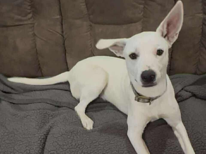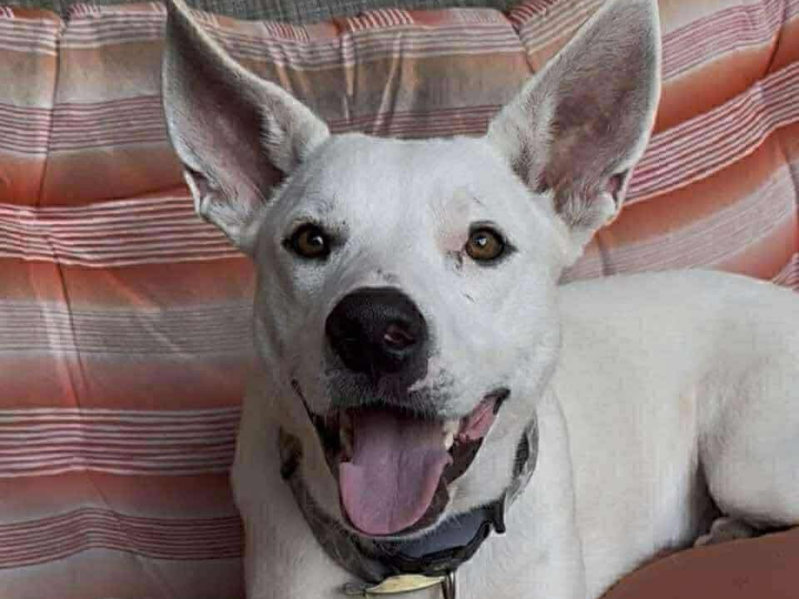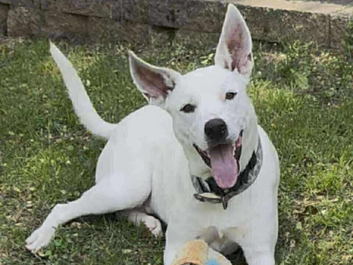 River Phoenix is a 1.5-year-old, 72 lb white shepherd mix who is fully vetted and ready to find his forever family. This handsome boy is a wonderful blend of confidence, charm, and cuddles – a gentle giant who thinks he’s a lapdog!