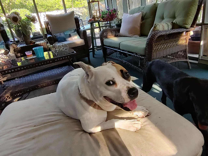 Foster insights/backstory: Roxy came to me last year, with an embedded collar and had been recently spayed. She's a happy girl, loves to play with her fur friends and she does love being outside. She loves to get belly rubs and she loves to go car rides. She's really an amazing girl who loves her toys and loves chew treats.