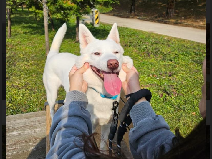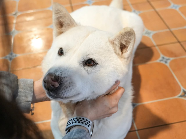 Chuu was rescued in June of 2023 during the summer months when there was a request made to the city shelter to capture wandering dogs in the neighborhood. Chuu was one of the two dogs captured during this process. Chuu was the mother and we believe the other one was her puppy. Since spending the time in at the shelter, Chuu has easily become the volunteers favourite with her dashing smile. Her pointy ears and pretty smile have captured the hearts of our Band for Animal team. There, she is enjoying the time spending her mornings with the trainers and afternoon with other fellow dog mates!