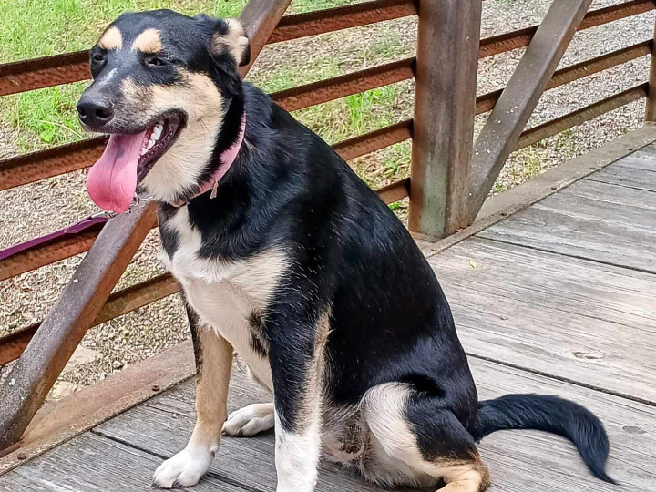 At mealtime, Sunni prefers her own space around other dogs, so she eats in her crate — no issues at all with people. She’s medium energy, not destructive, and would thrive in a home with a yard where she can run, play, and explore. While she could be an only dog, she’d love a playful canine buddy to share her days with. Apartment life isn’t her style, but a home with room and love certainly is.